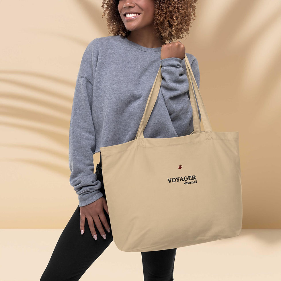 Large Organic Cotton Tote Bag with Embroidery | Spacious Eco-Friendly Shopper